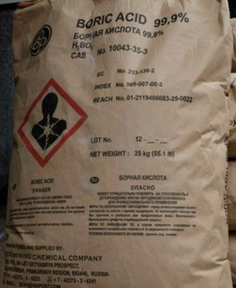 Белый кристаллический порошок . Содержание бора B-17,5%. Борная кислота Применяется как микроудобрение для предпосевной обработки семян и опрыскивания растений, а также для борьбы с муравьями.