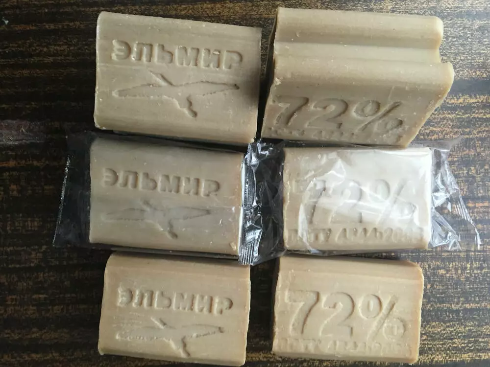 Товар продается только ОПТОМ!!! Мыло хозяйственое ― антиалергенное, твёрдое, цветом от светло-бежевого до коричневого, содержанием жирных кислот(ж/к) не более 72%, щёлочь около 0.15-0.2% и водородный показатель pH 11-12.